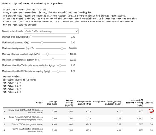 After completing the first stage, which aims to filter the family of materials that most closely resembles the desired specifications, the second stage in the selection of the material begins, which consists of applying a linear optimization problem.