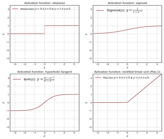 As illustrated in Figure 22, a neuron fundamentally operates by aggregating the weighted summation of its inputs and associated weights. Subsequently, an activation function, functioning as a filter, is applied. This function serves to activate neurons that demonstrate favorable outcomes. Figure 23 showcases some commonly employed activation functions.