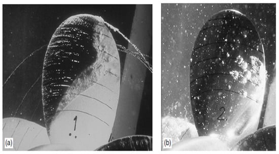 (a,b) Photos taken of propellers subjected to cavitation studies [25].