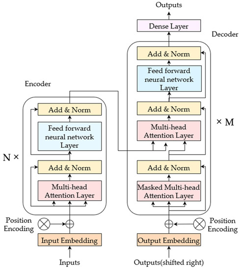 It can be observed from the calculation equations of the attention mechanism that the attention score of the current position did not depend on the information from the previous time step. Although both the encoding and decoding processes used a multihead attention layer, they differed in their approaches. The attention calculation was bidirectional in the encoding process. However, masking was applied in the decoding process to prevent the model from accessing future information. Thus, the attention mechanism could only focus on the earlier information, enabling the transformer model to be trained in parallel during the encoding process. In the multihead attention layers in both the encoder and decoder, h = 8 [27], the number of neurons in the feedforward neural network layer was set to 2048, and the number of neurons in the final output layer was equal to the number of input features in the model.