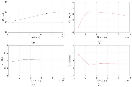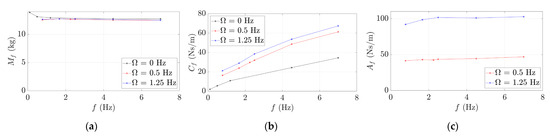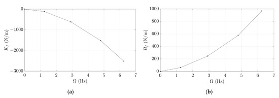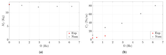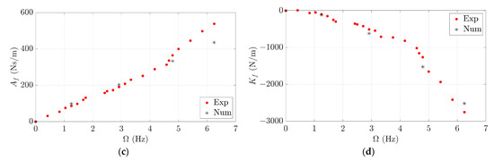 and were calculated directly from Equations (16) and (18), respectively. In order to separate the contributions of and in Equation (15), a new simulation was performed which consisted of forcing the fluid–structure interface to rotate and deform statically according to scaled by . Under these circumstances, in the direction associated with is only induced by as well as its corresponding added modal coefficient, and in the direction associated with is only induced by as well as its corresponding added modal coefficient, as shown in Equations (19) and (20) and Figure 4: