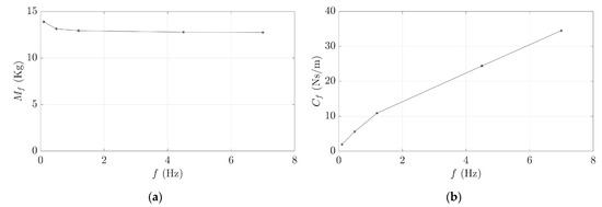 where is the cylinder cross-section area. It can be seen that and tend to a constant value when is higher than 1 and 4.5 Hz, respectively, and that they increase when is decreased at lower values.