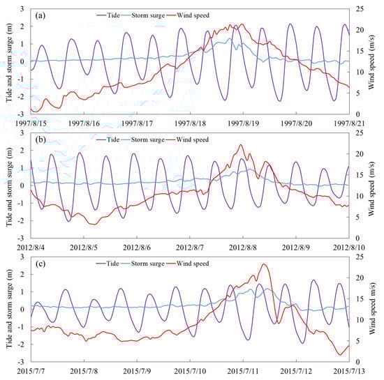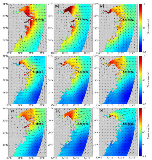 4.1. Storm Surge Process under Typical Typhoon Events