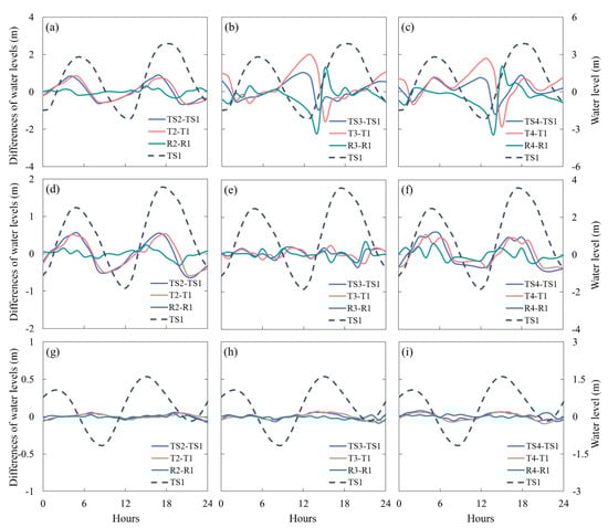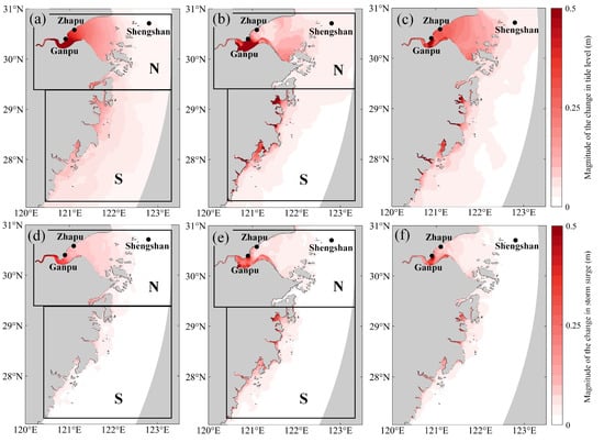 4.3. Comparison of the Changes in Astronomical Tides and Storm Surges