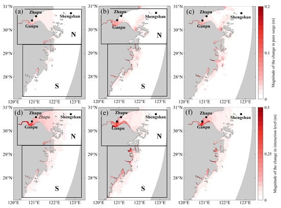 Area | Scenario | Average Change of Storm Tide (m) | Average Change of Tide Level (m) | Average Change of Storm Surge (m) | Average Change of Interaction Level (m) | Average Change of Pure Surge (m) |