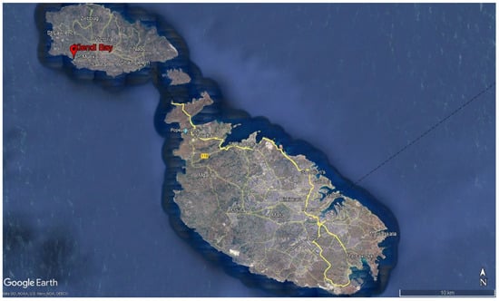 Map of the Maltese Islands highlighting the location of Xlendi Bay, Gozo. © Google Earth 2023.