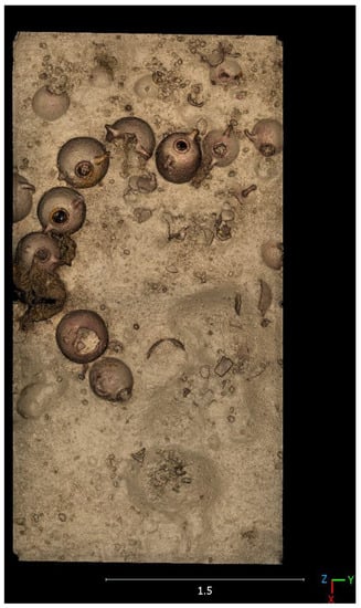 The precise setup of the submersible in terms of camera and light equipment, and how this impacted the 3D survey can be found in Drap et al., 2015 [13]. The selection of objects for recovery was based on how representative of the entire cargo they were and how easy and non-invasive recovery would be. A total of four objects were raised—a saddle quern base, an ovoid amphora, a flat-bottomed amphora, and an urn. The success of the 2014 field season led to further funding being allocated for 2016–2017 [10]. This time, a vessel with dynamic positioning and a submersible was not available, and a decision was made to deploy divers to carry out surveys and recover objects. Objects chosen for recovery in the 2016–2017 seasons included typologies not recovered in 2014, typologies like those previously recovered for comparative reasons, a rubbing stone, and fragments that were clearly in secondary positions. A total of 17 objects were recovered up until this stage of the project [14]. An analysis of the visible elements of the wreck allowed the cargo to be split into three main sections—the two extremities of the site composed of a visible 66 saddle querns and rubbing stones, and the central part of the site consisting of a visible 99 ceramic containers. An analysis of the cargo present is discussed in Gambin et al., 2021 [14].