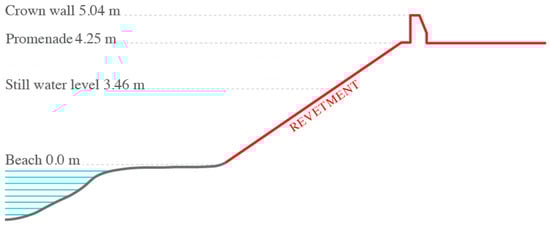 Traditional coastal protection measures include hard and invasive infrastructure in the form of quay walls, shore protection barriers (walls) and coastal dikes. While these structures have proved to be efficient, their spatial adaptation to the new climate scenarios is more challenging, since they are characterized by a strong footprint on the environment [6]. In certain cases, dike maintenance and (sur)elevation can have an enormous impact on historical structures, landscape, mobility networks and accessibility to the sea, particularly in those areas that heavily rely on tourism. For that, many recent research projects focused on the development of techniques inspired and supported by nature (the so-called nature-base solutions NBS), used to tackle societal challenges such as the mitigation of CO2 emissions, protection from pluvial and fluvial floods, as well as coastal floods associated with sea level rise, providing both benefits to humans and to the natural environment [7,8,9,10,11]. The expansion and restoration of sand dunes, creation of wetlands, organic material groynes and reefs to support flora and fauna repopulation are sustained by a wide range of professional figures and supported by public international institutions. However, nature-based solutions cannot always be used. For example, sand dunes—that have been proved to be extremely favourable for coastal protection [12,13]—require a lot of space in coastal areas, enormous amounts of (dredged) material, and a long time to be developed. This means that nature-based solutions in coastal areas may only be used where there is available unbuilt space and not in dense urban settlements.