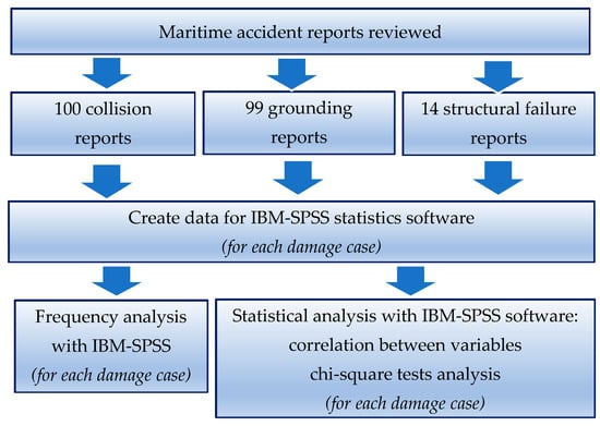 Methodological process of statistical analysis for collision, grounding and structural failure damage cases.