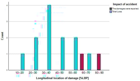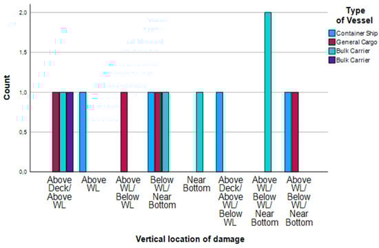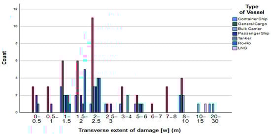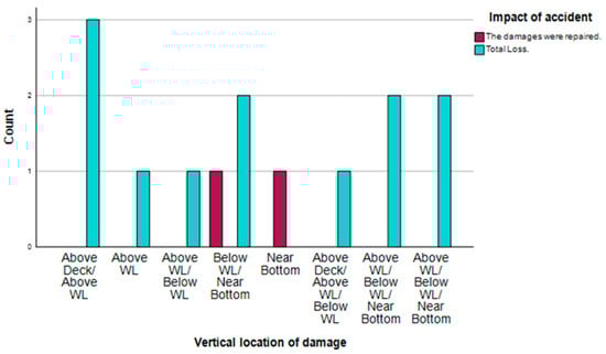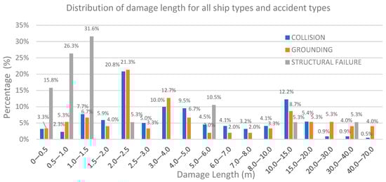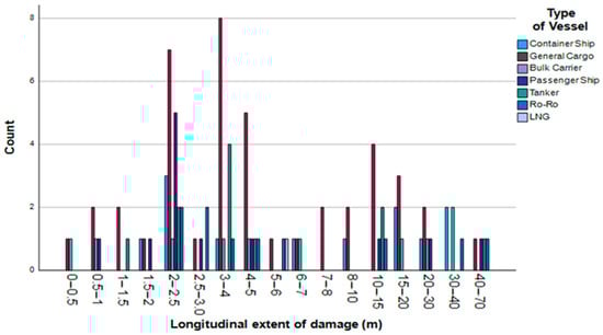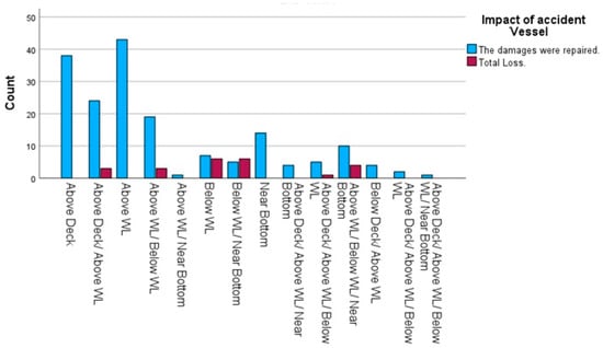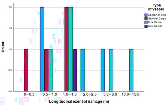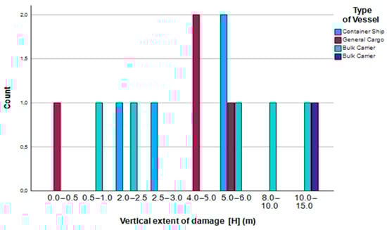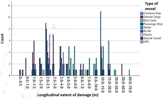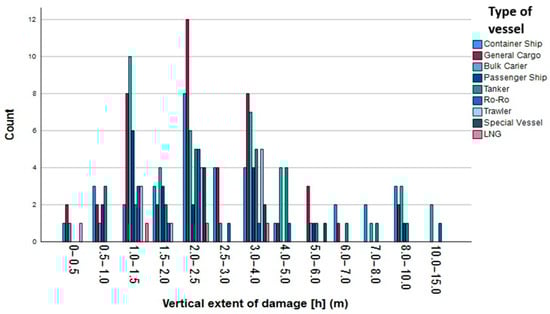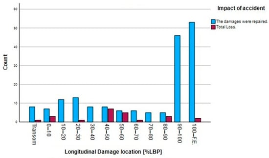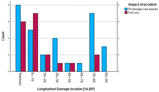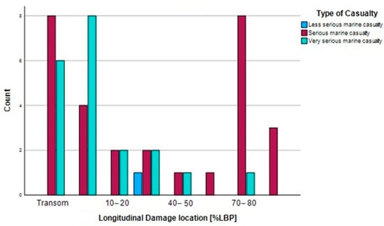 The novelty of our work lies in deducing both the size and location of damage for each vessel involved in collisions, groundings, or hull failures. Additionally, the correlation between key characteristics of the involved vessels (such as type and age) and the resulting ship damage was analyzed. The specific contribution regarding the arising damage not only deepens our understanding of the causes of marine accidents and their impacts but also provides valuable insights into the resulting consequences on vessel integrity, since determining the location and extent of the damage is crucial in estimating its potential impact on the viability of the ship, crew, and cargo. It is the authors’ belief that the specific information is not typically subjected to statistical analysis in the existing literature.