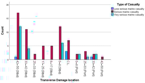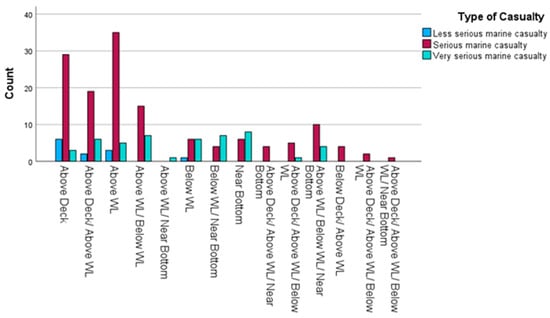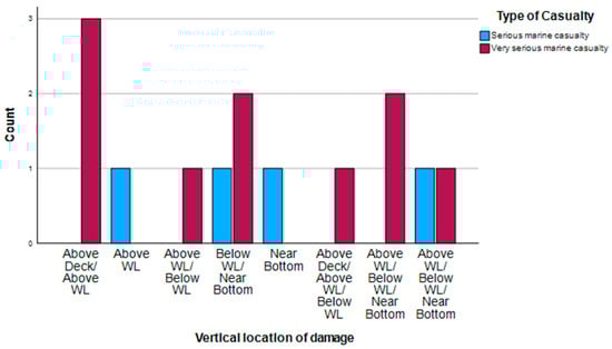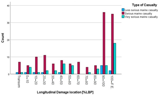 Similarly, in grounding incidents, very serious marine casualties were more common when the ship damage was at the aft part or approximately at the full breadth of the ship (on the starboard side) while, in the case of structural failure accidents, very serious marine casualties were more frequent when the resulting damage was in the aft amidship, above waterline, and above deck areas.