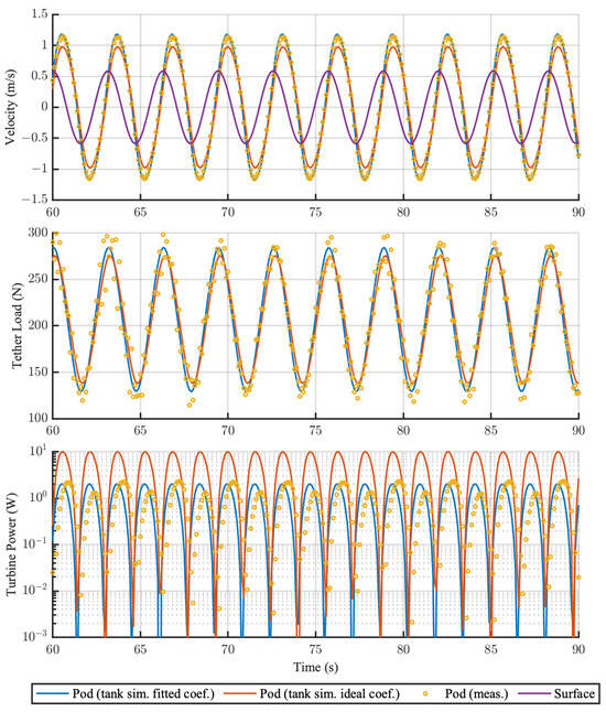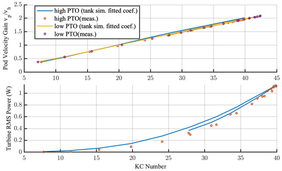 Figure 8) of all tank data. The assumption of constant turbine coefficients is a significant simplification of turbine performance. However, the good match between our model and the measured data suggests that the model may be used for recommendations of a full-scale version of a similar design.