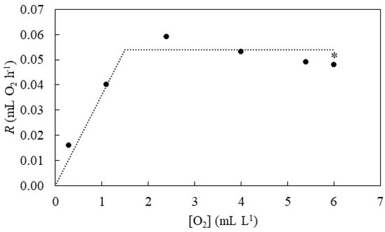 The following conversion factors were used: 1 mg O2 = 0.7 mL O2; maximum oxygen concentration = [O2] = 9 mg O2 L−1 = 6.3 mL O2 L−1.