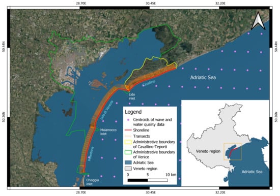 The Metropolitan City of Venice littoral, including Pellestrina, Lido, and Cavallino. The length of the transects was increased for better visualization.