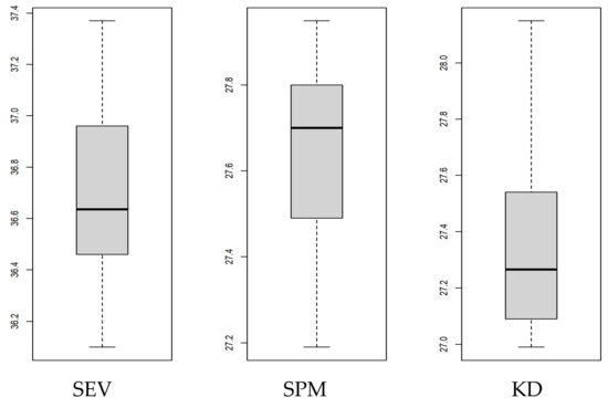 BN model validation, Boxplot that reports the average BN-model losses in terms of classification errors of assessment endpoints (i.e., shoreline evolution (SEV), suspended matter (SPM), and diffuse attenuation (KD)).