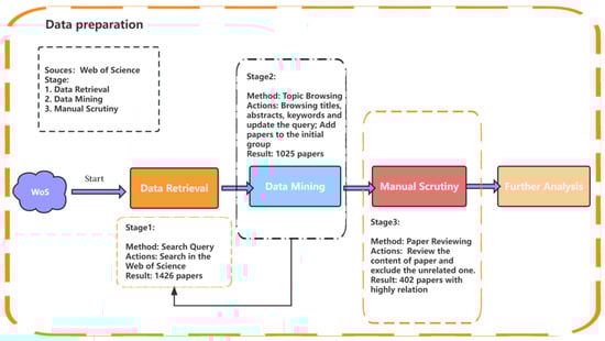 The process of preparing the dataset comprised three distinct stages. First and foremost, the initial step (Stage 1) involved the formulation of a well-defined search strategy and the acquisition of relevant data. Subsequently, the acquired dataset underwent an initial screening (Stage 2) before proceeding to the final stage (Stage 3), where two distinct methods were employed for data refinement. The complete process of determining the dataset was visually depicted in Figure 3 and was elaborated upon in subsequent sections of this part.