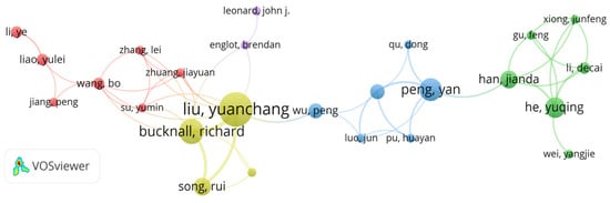 Meanwhile, the selective inclusion of authors is needed to create a visually clear collaboration network, and it is common to limit the number of authors included. In this research, authors who have published more than two articles on the new technology of USVs were the target. This selective approach ensures that the collaboration network included individuals with a substantial body of work in this specific area, thereby emphasizing the most relevant and experienced contributors in Figure 5.