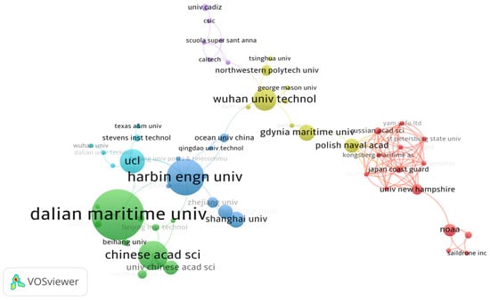 Among these institutions, Dalian Maritime University demonstrated the highest level of productivity, having authored 31 research papers. It was followed by Harbin Engineering University with 21 publications, Chinese Academy of Science with 15 and University College London with 13 publications. As evidenced in authors’ analysis in Section 3.1, University College London had a dedicated team engaged in USV research, playing a central role in this specific domain. Furthermore, in accordance with Table 2, Shanghai Jiaotong University and Shanghai Maritime University were the top two institutions with the latest and highest average publication year, denoting that they were conducting most of the new technology research in recent years and paying sufficient attention to the burgeoning development of USVs.