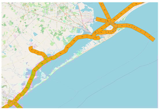 The second component of the ETL procedure is the “Transform”. This step considers the output we have gathered as clean raw AIS data from the Extract part as an input for further processing. The other input is a geographical information system (GIS) layer of all waterways located in the AoI. Thanks to the QGIS toolbox, we employ the “split line to maximum length” function to split the GIS layer into smaller, equally sized segments as depicted in
