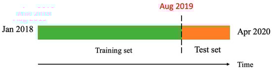 Figure 10, three years of data from January 2018 to April 2020 is selected and based on the chronological split, 80% of the data falls between Jan 2018 and Aug 2019.