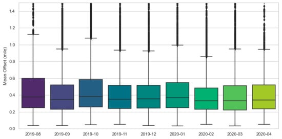 Note that it was impossible for us to capture weather data and merge them with AIS data based on time and location. Thus, we plotted our model’s error (mile offset between the predicted and actual point) versus the month of prediction to show the weather’s impact on our model’s performance. As shown in