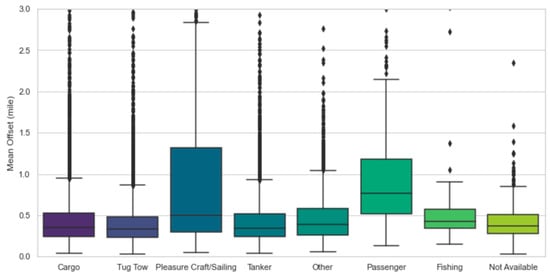 Figure 18, tug tows have the lowest error since their operations are hardly impacted by such restrictions. The average offset values of tankers and cargos are also low, which is a good sign, because, in practice, we care more about tankers and cargo’s locations in channels.