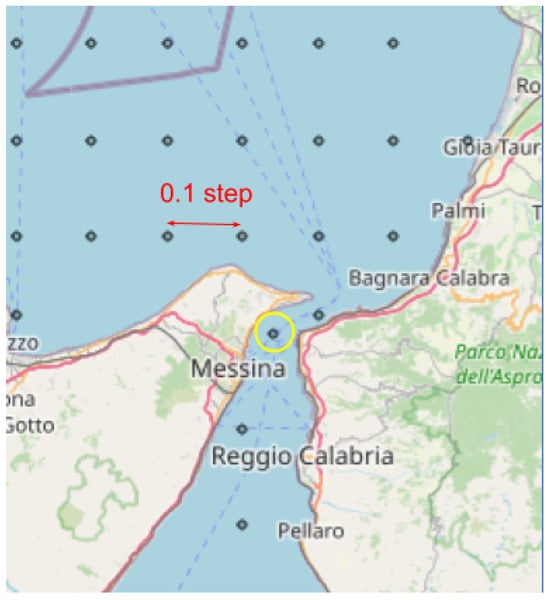 In Figure 9, we demonstrate an example of a sea grid with 0.1 granularity that employs custom grid points (yellow point) to narrow sea passages, corresponding to the actual points belonging to AIS clusters.