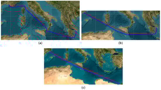 Alternative route construction. (a) Marseille–Piraeus. (b) Barcelona–Piraeus. (c) Alexandria–Barcelona.