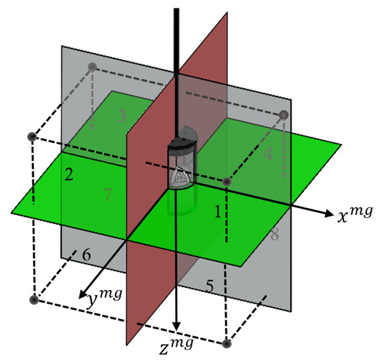 To mimic the magnetometer properties described in Table 4 and accurately simulate real-world measurements, the signals were discretized based on the magnetometer’s sampling rate and resolution. White noise with a standard deviation of 2 mG was incorporated, and a geomagnetic field vector of was defined.