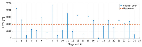 To refine the solution accuracy further, a refinement process was implemented. Via this, the outliers that exceed the maximum expected positional variation based on the AUV’s maximum speed during the terminal guidance maneuvers (0.15 m/s) are detected and excluded. Additionally, an averaging technique was applied over a moving window that included 50 computed positions.