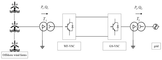 Schematic diagram of offshore wind farm connected to the grid through VSC-HVDC.