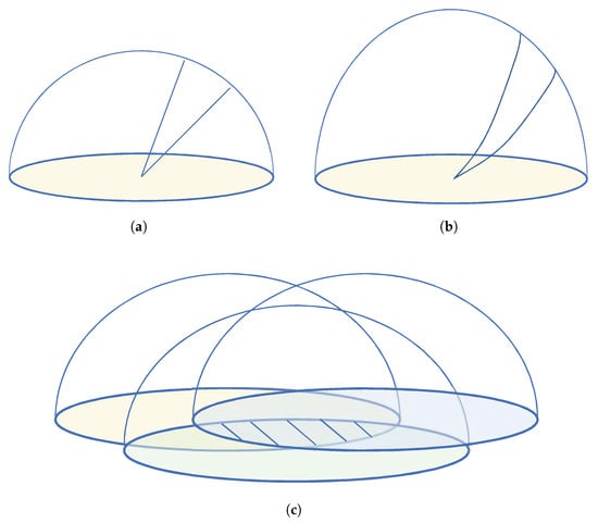 Anchor Coverage. (a) Hemisphere. (b) Irregular hemisphere. (c) Sphere intersection model with 3 anchors.