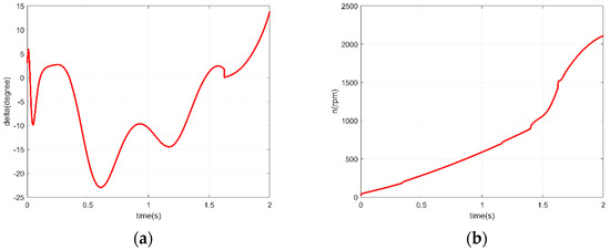 Control system responses at the water ejection stage. (a) Stern rudder response curve. (b) Propeller response curve.