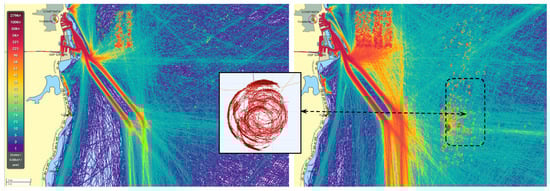 Of course, it is also possible to monitor ships outside the radio horizon. The signal from the AIS is broadcast in all directions, including into space, where it is received by AIS onboard satellites, providing a much wider and homogeneous coverage, which is of great value for the overall assessment of maritime traffic. There are three points to note: there is a cost associated with transmitting the data to the shore station; the temporal coverage is much less than a land-based AIS system; and the satellite AIS (S-AIS) does not provide a report from the ship at a specific time interval. Therefore, there is also another complementary, but mandatory, long-range identification and tracking (LRIT) system that requires the ship to send a position report every six hours. Each flag state is required to establish or select an LRIT data center to directly collect LRIT reporting the data from a ship entitled to fly its flag. The LRIT information is always available to the ship’s flag state in accordance with the data distribution plan developed by IMO to meet the flag state’s requirements. The IMO data distribution plan meets the flag state requirements and is linked to the routing rules. The International LRIT Data Exchange provides the other flag states with valid access to the LRIT data of the ships concerned []. LRIT and AISs have many differences, but primarily, AIS is used to avoid collisions, while LRIT is used to monitor specific vessels of interest to the government. These fundamental differences affect both how the self-reporting systems work and how often the self-reports are required. For example, for collision avoidance, only vessels in close proximity need to know a vessel’s position; therefore, STS VHF transponders are sufficient. In the case of LRIT, the global nature of the system appears to be the deciding factor in adopting a satellite-based system for transmitting LRIT messages. Unfortunately, we were not able to obtain S-AIS or LRIT data. The latter are of particular interest, as it is currently unknown to what extent LRIT is resistant to spoofing.