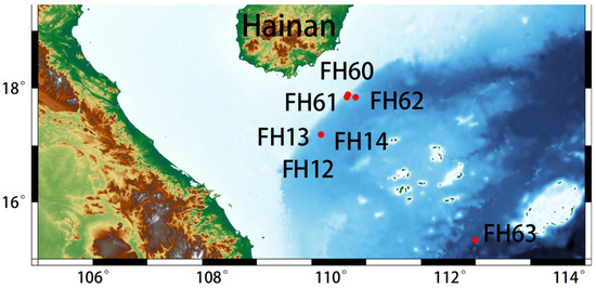 Sampling sites in the South China Sea. FH12–14 were sampled in the summer of 2018; FH60–63 were sampled in the spring of 2022. The details of the deployment sites and samples collected by a deep-sea lander are shown in Table S1.