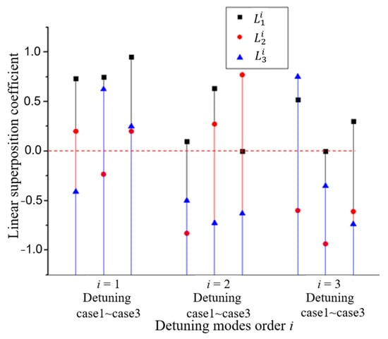 The linear superposition coefficient of first three-order detuning mode shapes.