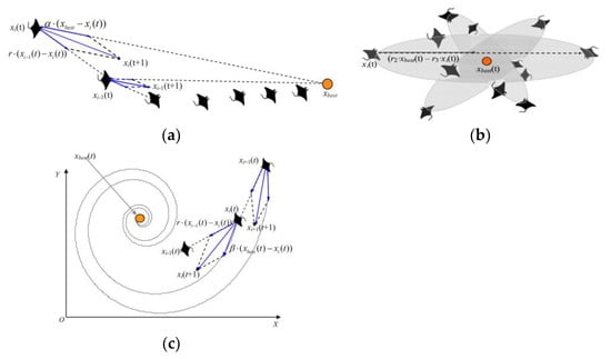 In the equation, represents the position of the i-th individual in the t-th generation in d dimensions, r is a random number in the range [0, 1], and (t) represents the position of the best individual in the t-th generation in d dimensions.