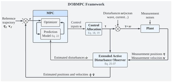 The future work encompasses two primary aspects. Firstly, a comparative analysis can be conducted to assess the effectiveness and robustness of the proposed DOBMPC in relation to other robust controllers, such as SMC [32], which have the capability to adapt to complex operational environments, and other DOBC methods mentioned in the literature review [18,19,20,21]. These comparisons will provide valuable insights into the performance of the proposed approach. Secondly, the validation of the DOBMPC can be enhanced by conducting simulations in a more realistic environment. It can be achieved by using computational fluid dynamics to create a wave model [49]. This will allow for a better representation of real-world conditions and further evaluation and refinement of the DOBMPC’s performance.