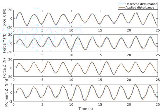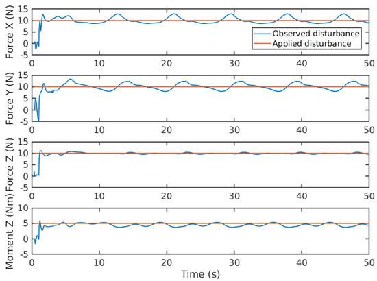 Disturbances estimation of periodic waves during lemniscate trajectory tracking.