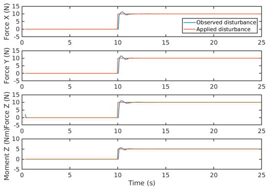 - In this work, the estimated disturbances are explicitly taken into account within the prediction horizon of the MPC framework. This enables the generation of optimal control inputs that effectively reject disturbances, surpassing previous related works that may not have explicitly considered disturbances within the optimization process. By incorporating the estimated disturbances throughout the MPC’s prediction horizon, this approach ensures the provision of control actions that account for the presence of disturbances.