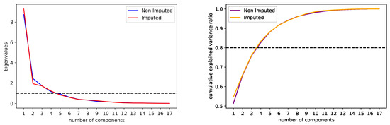 The total number of principal components that need to be preserved can be obtained by using either graphical techniques, such as the “Scree plot” or the “Explained Variance plot”, or by using a widely known criterion introduced by Kaiser in 1960, which assumes that principal components that have eigenvalues greater than 1 should be preserved [49].