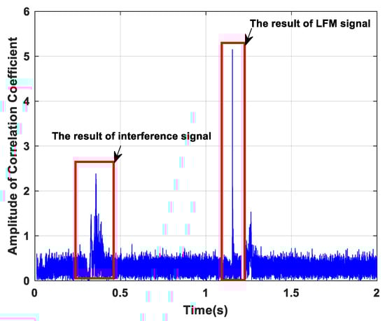 - According to the pulse compression results, the correlation coefficient is calculated to detect the arrival time of the signal. The non-system signal is eliminated according to the chirp gap to improve the reliability of the algorithm.