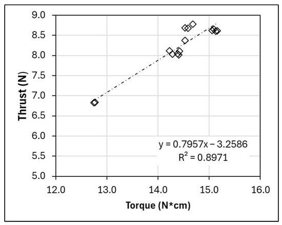 Mean thrust in Newtons (N) versus mean torque (N·cm).