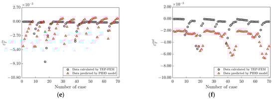 In this section, the PIDD model was constructed using the trained thermal and mechanical ANNs from Section 4.1 and the performance of the PIDD model was examined for plate thicknesses that did not occur during training (unseen thicknesses). The plastic strains corresponding to the machining parameters were calculated using TEP-FEM for plate thicknesses of 20 mm and 40 mm. Then, the plastic strains corresponding to the same machining parameters were predicted using the PIDD model and TEP-FEM, respectively. Figure 9 presents the plastic strains obtained by both methods. The consistency between the PIDD model and the TEP-FEM results is evident.