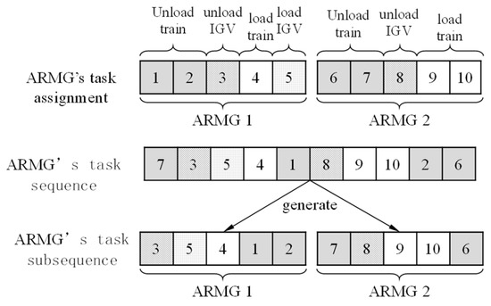 | Step 2 | Generate the task sub-sequence of ARMG and the task assignment ( and ) according to and the task assignment |