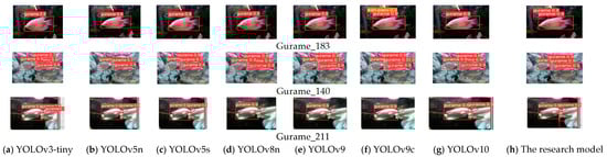 To assess the performance of the improved CUIB-YOLO algorithm, three additional mainstream YOLO models are included in comparative experiments. The results are summarized in Table 4. From the table, YOLOv3-tiny exhibits relatively high model parameters and computational requirements. YOLOv5n, with similar parameters and calculations to the model proposed in this study, has a lower mAP. YOLOv5s, being a larger model, does not align with the study’s goal of model lightweightness. YOLOv8n, while achieving a 0.1% higher mAP compared to the proposed model, has a superior performance in terms of model parameters and computational efficiency. The yolov9 model has the highest accuracy, but the number of parameters is 20 times that of the benchmark model, which is difficult to apply in resource-constrained settings. Although the number of parameters of yolov9c is reduced to 25M, the accuracy is not as high as that of the model proposed in this study. Although the number of parameters of the yolov10 model is similar to that of this model, the accuracy is 3% lower.