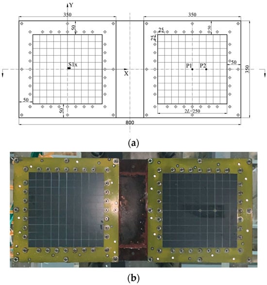 (a) Sketch and (b) picture of the test plates mounted on the rectangular fixture.