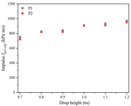 Pressuretime histories and the relevant integral impulse variations at P1 and P2 with different drop heights.
