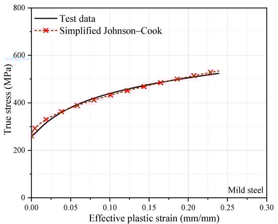 Fitting of the Johnson–Cook model to the stress–strain curve of mild steel.