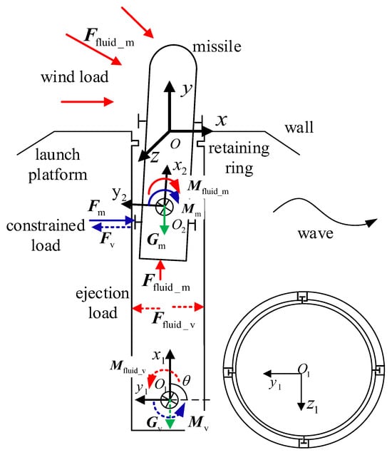 Sea surface launched missiles play an important role in modern warfare. In the process of launching the missile out of the tube, the body of the missile is subjected to the joint action of many kinds of loads, including the thrust of the ejection gases, the resistance of the ambient fluid, and the binding force on the body of the missile by the guide rail of the launch tube [1,2]. In addition, in the actual launching process, the launching platform is often in motion, and the launching of the projectile will be affected by lateral winds as well as waves. These effects will increase the lateral collision between the projectile and the launch tube, which will form a complex force state between the projectile and the launch tube. In-depth study of the evolution characteristics of the flow field during the launching process and the restraining load characteristics between the projectile and the launch tube play an important role in improving the structure of the launch tube, which has received extensive attention from researchers [3].